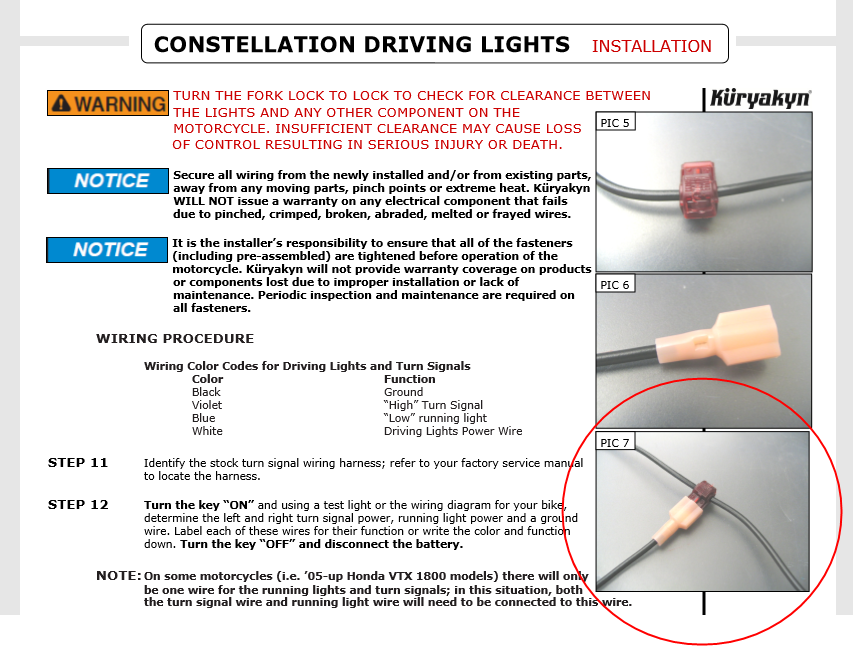 The driving lights are another issue and perhaps a topic for another post. Basically, it's not advisable to tap into a key-on wire to power the driving lights, usually the convenient headlight wire. The extra current draw is likely to overload the donor circuit. Instead, the driving lights should be powered by a direct line to the battery positive terminal with an intermediary relay and a in-line fuse. The relay insures that the driving lights shuts off, won't remain on, when you turn off the key. Kuryakyn sells wire looms for this purpose. Bons too as h13man noted. It's easy to put together your own safety loom, though. I would check out the YouTube videos to get a general idea of the wiring.