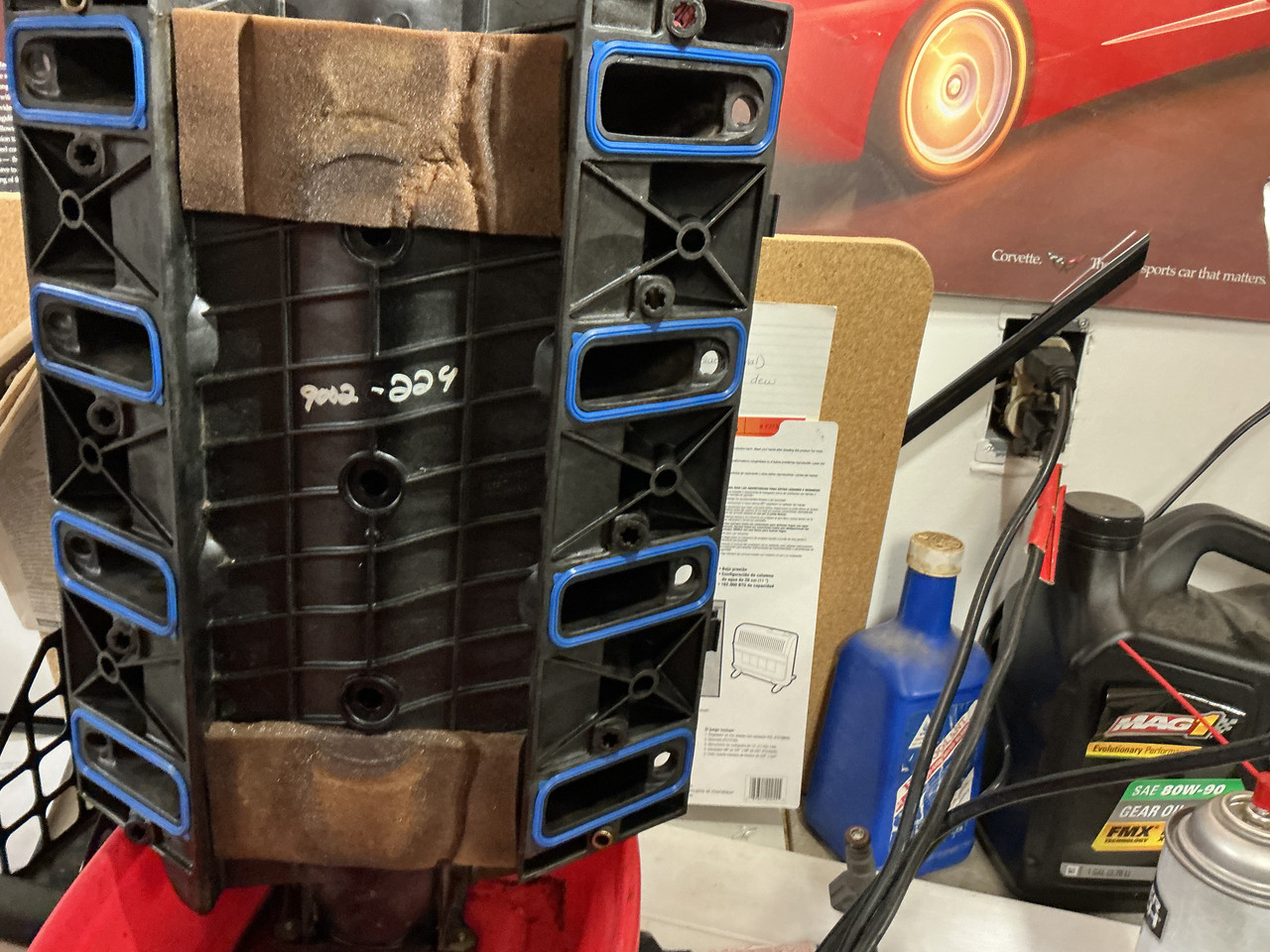 More attempts to move forward on the Corvette work. I ordered new intake manifold gaskets and new ORings for the injectors so I figured today would be a good time to get them installed. Ordering replacement parts from Amazon is a mixed bag. If you haven’t done much of that you might not know that you can enter your vehicles into their online “garage”. Then you can chose the vehicle you are wanting to order parts and it will filter out part numbers that don’t fit your selection. So I selected FelPro gaskets for the intake and they look fine and fit very well, but wouldn’t you know it, packaging said made in China! Surprised, not really, disappointed, a little. I’m assuming they will perform fine. FelPro was also my go to for gaskets in the past.  So on to the fuel rail and disassembling the injectors. Never done that before, and even though the old O-rings were the only thing holding them to the fuel rail, they still put up a fight, I forgot to mention the injectors were still in the intake and the fuel rail when I started. So once I got the fuel rail and injectors separated from the intake, I decided that I would do the O rings on the intake side of the injectors and while they also put up a little resistance, I had them changed in short order. At this point I haven’t released the injectors from the fuel rail and they are held in place by metal clips. Once again I elect to do them one at a time instead of having a bunch of loose parts laying around. I take the first clip off easy peasy and against the oil ring puts up a fight but come off with about the same amount of effort as the intake side. That’s where the disappointment sets in. I knew as soon as the injector was free the O ring was not the same size as what came in the package. Just to confirm, I removed a second injector and it was not a fluke. Keep in mind this was a confirmed fit for a 99 Corvette ls1 5.7 engine and it was in GM packaging. Original on left, new on the right.  Actually all 16 O rings came in the same package. As far as I can tell if all 16 O rings had been the same as the ones I put on the intake side of the injectors, it would have been job finished! So here I sit waiting for another Amazon delivery hoping what I reordered will be the right ones.