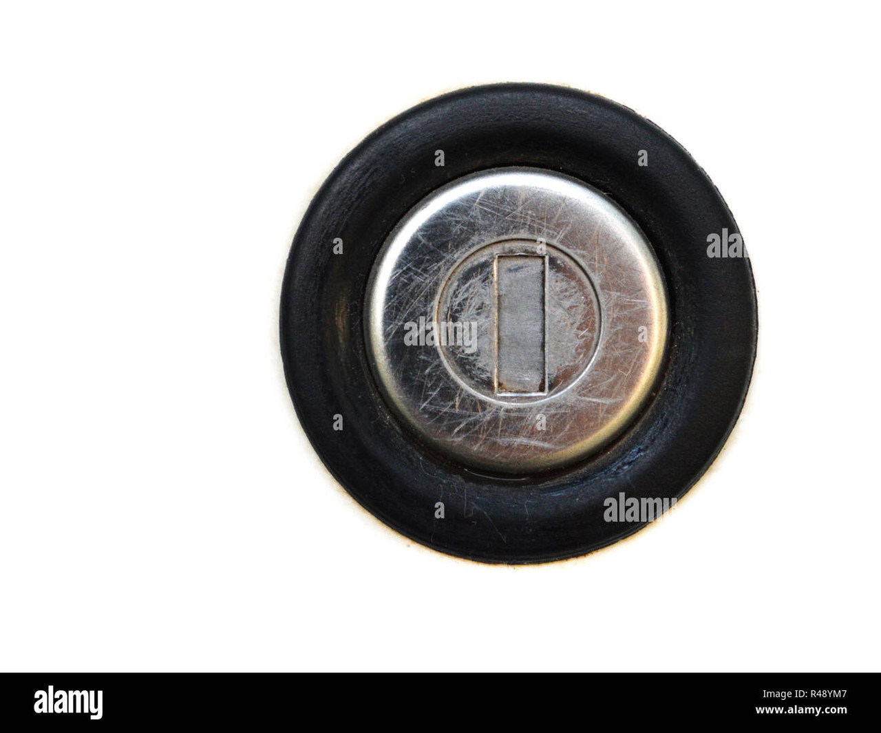 It’s the little door that flips open when you insert the key. Get a thin ice pic paper clip or tiny knife blade and coax it out. It’s not that hard