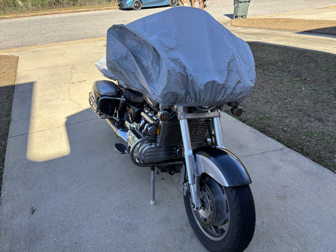 By the time our girl was unloaded and the groceries put away, the moisture dividend had increased a smidgeon to a somewhat heavier drizzle... I decided to wait for a slack time to place the cover on our girl...