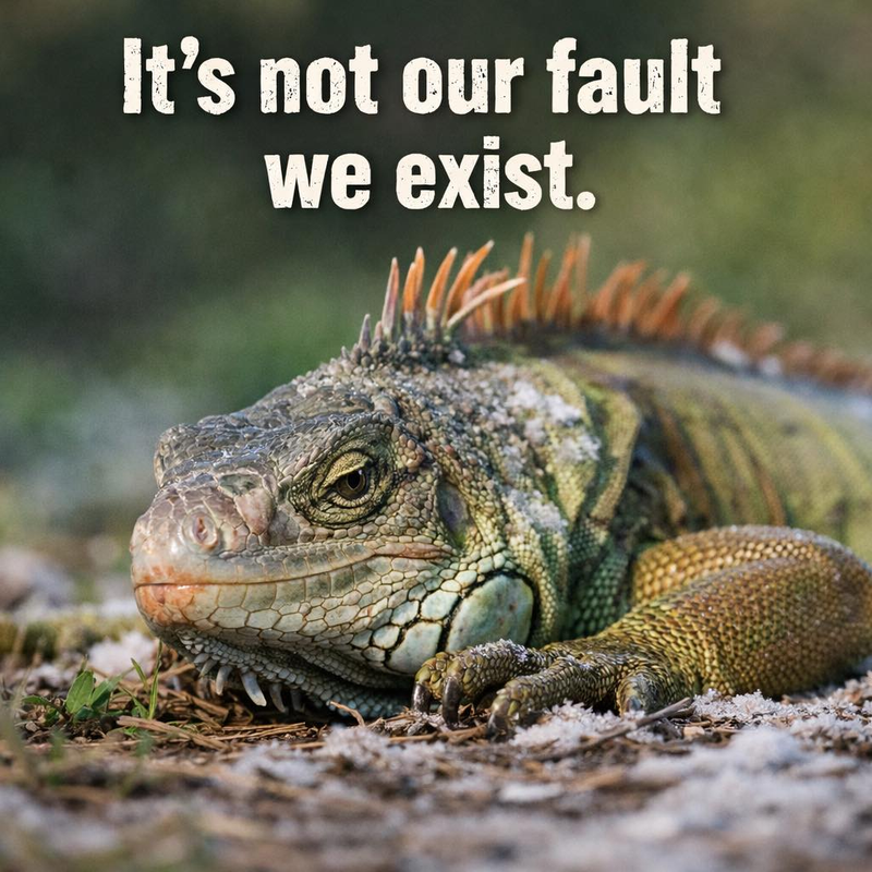 Iguanas are not aggressive. They do not hunt people. They are largely herbivores, minding their own business, trying to survive in a world that keeps changing around them. Killing an animal while it’s helpless from cold stress isn’t “management”—it’s cruelty dressed up as convenience.