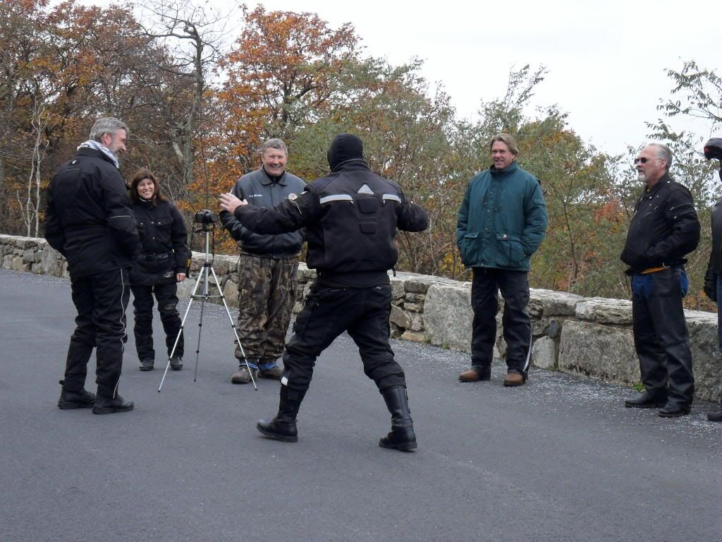 The morning was a little cool and cloudy, but a pretty "Motley" crew showed up to ride anyway. The FAT LADIES were all ready to ride.  Even with the clouds the views were still pretty good.  At one of our stops Jess decided to "Check Out" one of the many trails................  I'm not sure but I think that he might be telling us about the big bear that he saw........... The sun did come out and made for some really nice views..........    After a late lunch everyone headed out to beat the setting sun home. It was a good day for some good riding and hanging out with some good folks. More pics @ http://photobucket.com/VA_FCR_Ride_2011