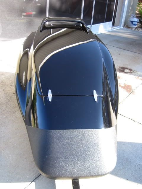 My Hannigan trailer was a mess. It had hundreds of chips through the gelcoat from tens of thousands of road miles. Some were pretty large, like nickle size. I was going to have it sprayed with bed liner just to pretty it up a bit. The bed liner places wanted $500 to do it. In my search I found a place here in Orlando called Hot Spray. They do a lot of work for the theme parks rejuvenating the rides and park structures. I found that they had a ton of good solutions for some problems we had at the plant also. I had them spray some problem tank enclosures with a polyurea spray. They looked great. So I showed them my trailer and asked if they could spray it with truck liner material. He said they could if I wanted to, but they could fix it up like new also. I figured it would be an arm and a leg, and really didn't expect much in the way of a quality finish. But I let them have a go of it. I stripped the trailer as much as possible. I told them I would take the frame off and bring them the shell because I wanted to get the frame powder coated. He said "don't bother, we have a coating that will out last powder coating" So I brought the rolling stripped down trailer to them. They had it for about two weeks and I just picked up a few minutes ago. It looks AWESOME!! They sprayed the underside and the nose with a course material like bed liner but tougher, and the top and the wing are shinny smooth black! I am very impressed. The cost? $250. I'm sure they gave me a break on price due to the possibility of more industrial jobs at my plant, but I'm not complaining. I'll take some pics when I get it home. http://www.hotspray.com/