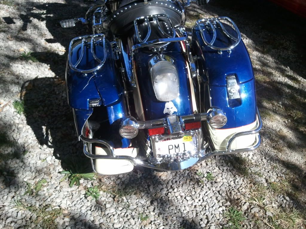 Friday I decided to take a little cruise down the river road in Grafton IL. Couldn't ask for better weather or a better fall day. While riding through town I noticed another Valkyrie parked at a local bar with an assortment of different bikes. It didn't take long after I parked my bike that the Valk rider and I struck up a conversation. His name was Rick from Kentucky. I introduced him to the VRCC and told him to check out the website. He had just bought his Valk a few months ago, and was pretty much in love with it   Ricks Valk   We split ways and I proceeded to head home for the day. While heading home, some idiot on an Ultra Classic decided to ride behind me. I slowed down to make a turn and BANGGGG!!!!  The fellow rider clipped my ass end with his crash bar. As soon I felt the smack, I look over my shoulder to see a bike pass me with no rider!!!! I pulled over, got off my valk, and started searching for the rider to other bike. Luckily, I find him along the road dazed and confused. I did a quick assessment of the damages. His HD was pretty well transformed into a POS in a matter of seconds. Thankfully my valk is just going to need a new saddlebag and bag rails. I was pretty worked up about the whole thing, but crap happens. So now I'm just waiting on Insurance to come through. I did learn one thing. If you ride a Harley, and decide to rear end a Valk, It will kick your ass right off your Harley (obviously). At least I can call 1-800-RENTAVALK (Painter and Poe) and get a loaner for the time being. I guess I'll have to live with riding a damn Interstate for a while