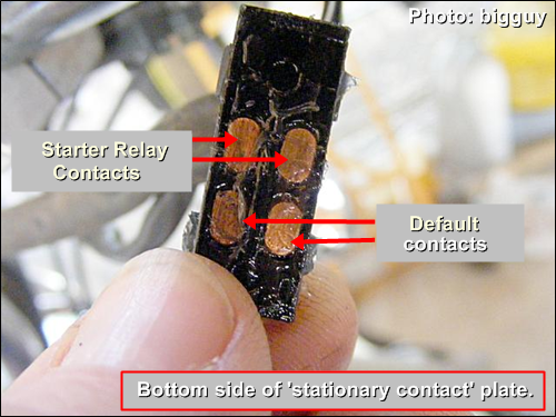 The picture captioned (Moveable Contact) shows the spring loaded contact. The melting is (can be) caused from poor contact causing resistance and heating. Continuous cranking (or too many lights on the circuit) is most likely the culprit.