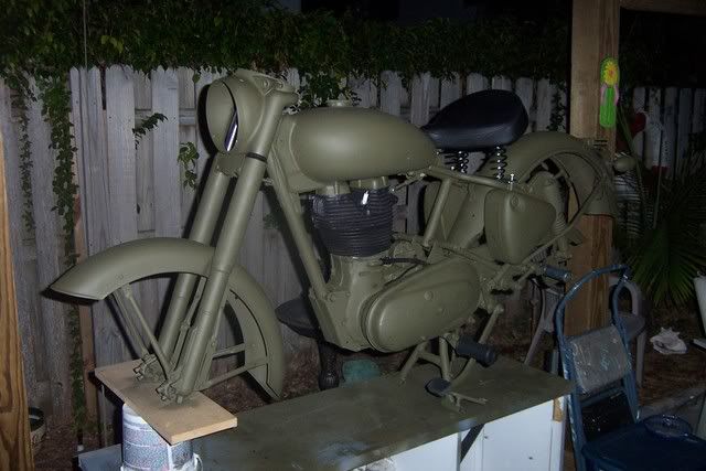 There is a guy in my neighborhood that has ammo cans for bags on a older Honda (500 I think) He also had most of the chrome painted black and most the tin is painted OD green. I think it looks great! Good luck and have fun!