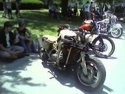 Hello guys! it has been a long time since I was on here.. I got med-evacted out of Afghanistan in Late December of 2009. In July 2010 they did surgery and put my back back together, PTSD and MTBI are still issues that we are working on ;-) ...... While I have not yet got my Valkyrie Trike [Emphasis on the"YET"  ], I did pull my 1985 Magna out of deep storage and have it redone....... This thing has set in the back of the barn since 1991....... Pulled it out, still had air in the tires!!! My guy, cleaned the carbs, Changed the fluids, put fresh gas in it, hit it with starter fluid and it cranked & started.... turned over very slow however and blew LOTS of smoke! Adjusted the carbs and changed the oil again and tried it again....... turned over faster and ran like a raped ape till it blew the oil filter off....... Changed the oil agin this time with a new filter, readjusted the carbs and it was on the road for tests...... Since then, have replaced the battery, new rubber, new fuil pump, and for about a thousand dollars she's back on the road.....  The chrome is ratted out from 20 years in the garga but, I have an answer for that!!! I am going to get a couple 20mm Ammo cans and a friend is manufacturing baskets to hold them as Saddle bags.... Then, I am having it painted WWII OD Green, all chrome will be painted flat black or zinc chromate..... Everybody I have told this plan to with hardly an exception turns up their nose and makes a comment along the lines of, "That'll look like Dog crap..." or man you're goina' trash a good bike...." And then after they think about it for a little bit they come around to the idea..... I am being medical'ed out at Ft Knox sometime by the summer.... I really hope that I can get a Valk by then and ride with you guys in the spring when the weather gets good again..... If I don't have a valk by then, I hope that maybe you guys might lower your standards a little bit and maybe let me ride my retro Magna with you till I find that VALK........ I would like to say thanks to all the messages and camaraderie while I was in Afghanistan... It was a rock of sanity to anchor to.... That might sound crazy to anyone that hasn't been there but let me tell you..... Dreams of Valk rides and seeing the pictures of the rides really helped a lot! So, again Thanks.....