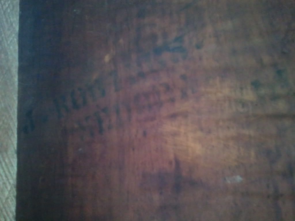 According to my grandmother. My great great grandmother, purchased this table used from a local auction around 1907ish (around the time my great grandfather was born). While sanding some of the grime off under the table top, I noticed a very faint stencil almost unreadable.