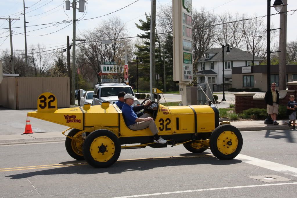 Our town was competing in an Indy 500 contest for small towns (we lost) and this is the parade connected with it. Both of these cars were running under their own power.