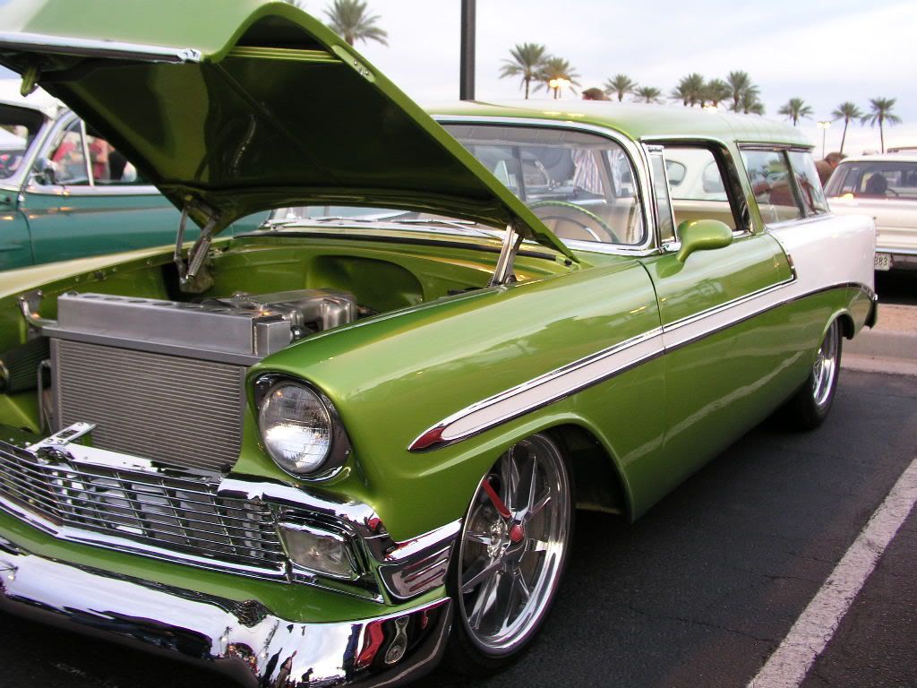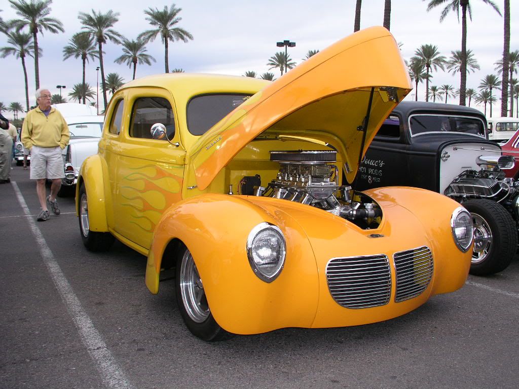 That would be Barrett Jackson car auction. The local car show packs 'em in this weekend and next. Here's some of the cars/bikes that were there tonight. Britman can reminise the old days back in the UK. The green/white 56 nomad has a 502 crate motor in it. The 48 Caddie convertible has been stretched 7 inches in the door and has a Northstar transverse engine with front wheel drive. The updated dash is spectacular. Sorry I forgot to get a pic of it. The jet bike is the owner's 3rd one. This one has about 500 HP. The wing is mine.