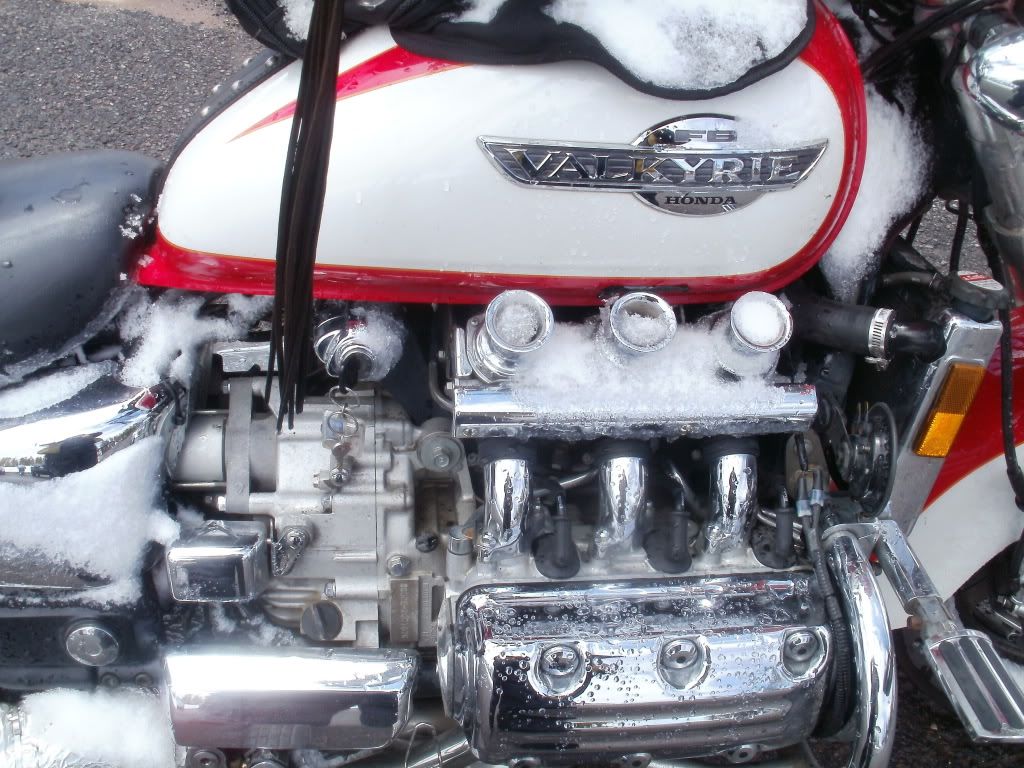 that my friend is SNOW!!! new mexico 2011 california mono hot springs a few days after plows opened it up  more snow california up by tahoe  snow in utah ceader breaks  for the record im at about 500 miles in the snow, hit it in montana, washington, oregon, california, utah, colorado, north carolina, virginia, and west virginia " i do these things not because they are easy, but because they are hard " dan I wonder how aircraft de-icer works on Valkyries? lol I'm curious about something... It seems I remember seeing a video on Youtube showing a irritable moose along a stretch of road in some park making a half hearted charge of a motorcycle... a red and white Valkyrie as a matter of fact. That wasn't you was it?