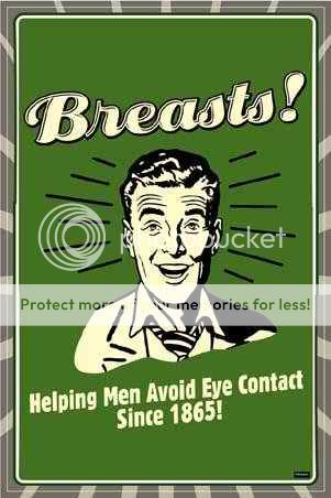 First of all, cover them up if you don't want me looking sweetie. Her: "Um, I'm up here." Me: "No you're not."  Second, there's a difference between looking and leering.