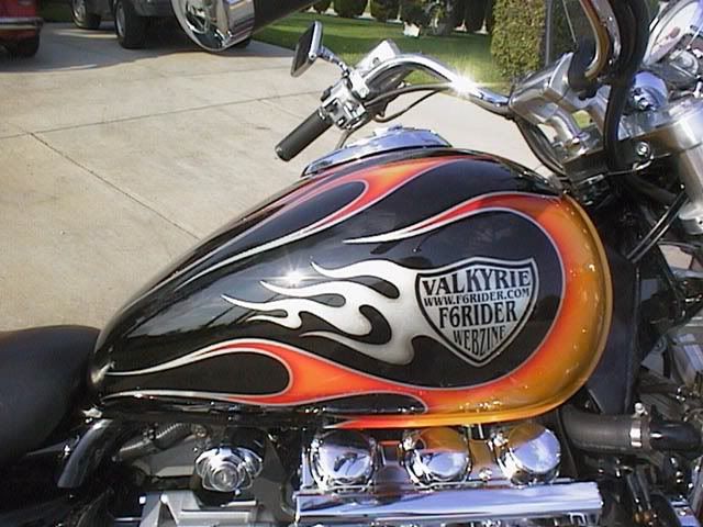 Has anyone ever used vinyl or airbrushed the Valkyrie emblem on their tank before? I have a custom paint job on my bike and no tank emblems, so I was wondering if anyone has done this. I am thinking about it. My wife is in business for herself and she does shirts, hats, vinyl, embroidery, digital screen printing and all that stuff, so I get a discount