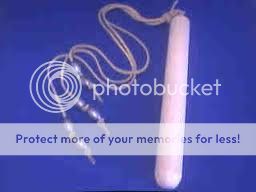 From my side of the picture, it looks like a butt probe with a few leathers shoe laces attached for ease of pulling it out.