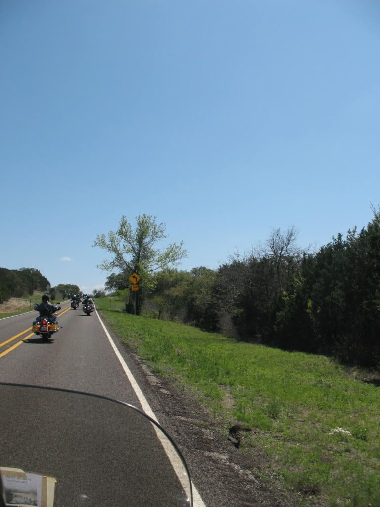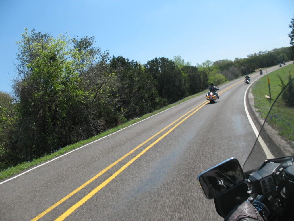 These next pictures are from the ride in memory of laserpat. Some great views and lots of curves. Even saw some bluebonnets out to pretty things up a bit.