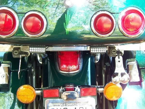I've been wanting to get a chrome set and hang them much lower on the bike in the middle behind the rear fender on the bar, but looks like your chrome on your rear fender might get in the way of hanging them there, not sure.