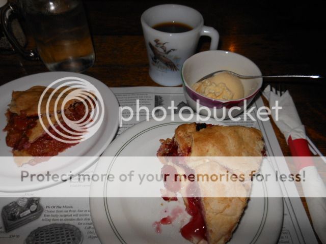 Waitress was very, very cool and I highly recommend it if you are in the area.  Man, I could decide if I wanted to try (for my first time ever) a Rhubarb/Raspberry pie or the Cherry Strudel....so I got BOTH with a bowl of ice cream on the side!! BOY HOWDY!!!!!!!!
