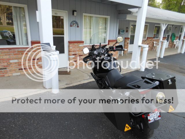 1338 miles from my garage to the Hotel.  Felt good to finally get off the bike.  The Vstrom ran like a sewing machine, but the seat was....well, like Blackdog said, I had ridden a 400 pound suppository all the way to Michigan.