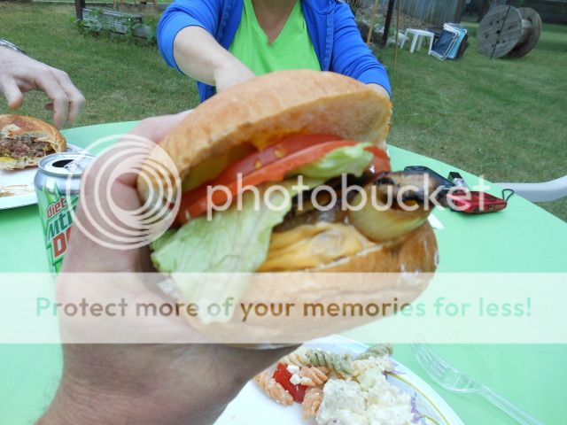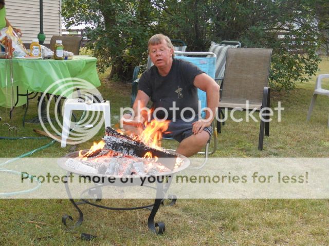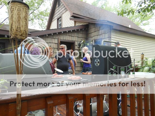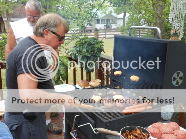 People started arriving and the Q was on!  Timbr got the fire blazing and burgers cookin'.