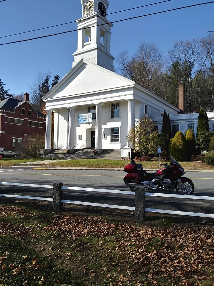 Took advantage of the unseasonably warm temperatures today and took a ride. December is shaping up to be a busy month, so this could potentially be the last ride of the year for me. We'll see. Was on the road by about 10:30 and headed to the Sunshine Cafe in Clinton, MA for lunch. They do a great Irish Benedict with hash instead of Canadian Bacon. Home fries are on the side. That's my usual and got it today with an ice coffee. Excellent! Next was a stop in Sterling center so I could snap some pictures and send to Gary to bust his chops that he was at work. He really enjoyed them.  One of the pics is below.  From Sterling I took Route 62 west to Barre and then 32 north to Petersham Center. Picked up a jar of honey at the Country Store and then strolled around the Common to just enjoy the beauty of the day. From the Center, I took East Street through a bucolic landscape of farms and hills where you would swear you're in VT. There's a lot of hidden gem roads in Central MA just waiting to be discovered. East Street turns into Pleasant Street in Barre and brings you back to Barre Center. This is a great alternative route instead of taking 122 back to Barre. Much prettier, but the road is not 122, meaning you can't really ride it safely at 50+ mph. Although I'm sure Rich could.  I just putted along and enjoyed the scenery. From Barre, back to Princeton Center on 62, where I turned left on to Mountain Road to ride past Wachusett. It was too hazy to see Boston from Mountain Road, but on a clear day, you can see it if you pull over at an open space. From the Mountain, I took 140 south to head home. A great ride of 130 miles on a beautiful mid-November day!