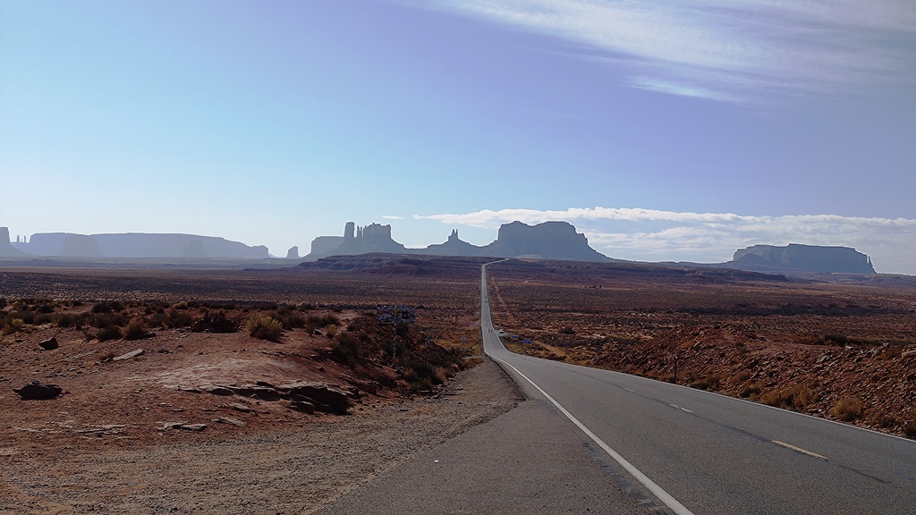 While scenic, that appears to be a whole lot of straight road there.  Rams That's Forrest Gump Point just ahead. It gets busy at times with people pulling over to stand in the middle of the road and pose for photos. The area is spectacular and it's easy to see why countless movies (especially Westerns) were filmed there. [/quote Gotcha. Last time I rode in the desert, I had a blowout on the back tire of a KZ1000. Heavily loaded for a long trip. I do not have pleasant memories of that journey. No one would slow down or stop to either help or call for help.