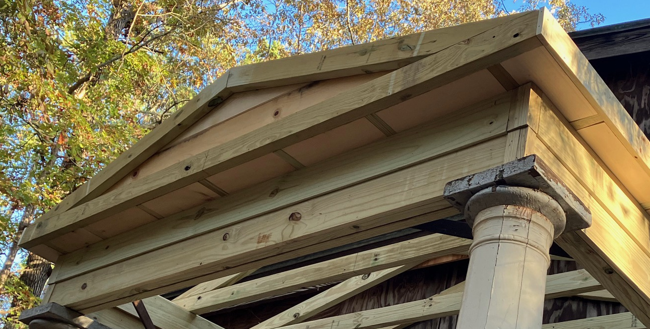 I tore down the steps (that's all there was, the front door has just been plastered onto a blank front wall) and built a front porch. It has been great fun, until the roof. 30 years ago I put a standing seam roof on the whole house with 100 year old manual tools. Getting back into the swing of things and finding the material I needed and working on such a small roof turned out to be a challenge. I put one side of the roof on with 26 gauge metal. It was extremely hard to do, and I wasn't satisfied with it so I tore it off and started over with 29 gauge metal from a different supplier. 30 years ago I easily got wonderful rolls of material for about $30 a roll. The 26 gauge I just got was almost $200 a roll! The 29 was "only" about $55. I could bend the $55 roll well enough, but found that it has low "fatigue resistance"... it breaks at the bend easily. Yesterday, I got the last panel up  ...   I've had the columns for 30 years or so, Salvage from some old Southern house. I got the capitals with them and had to make the bases myself. Anywho... whew! -Mike