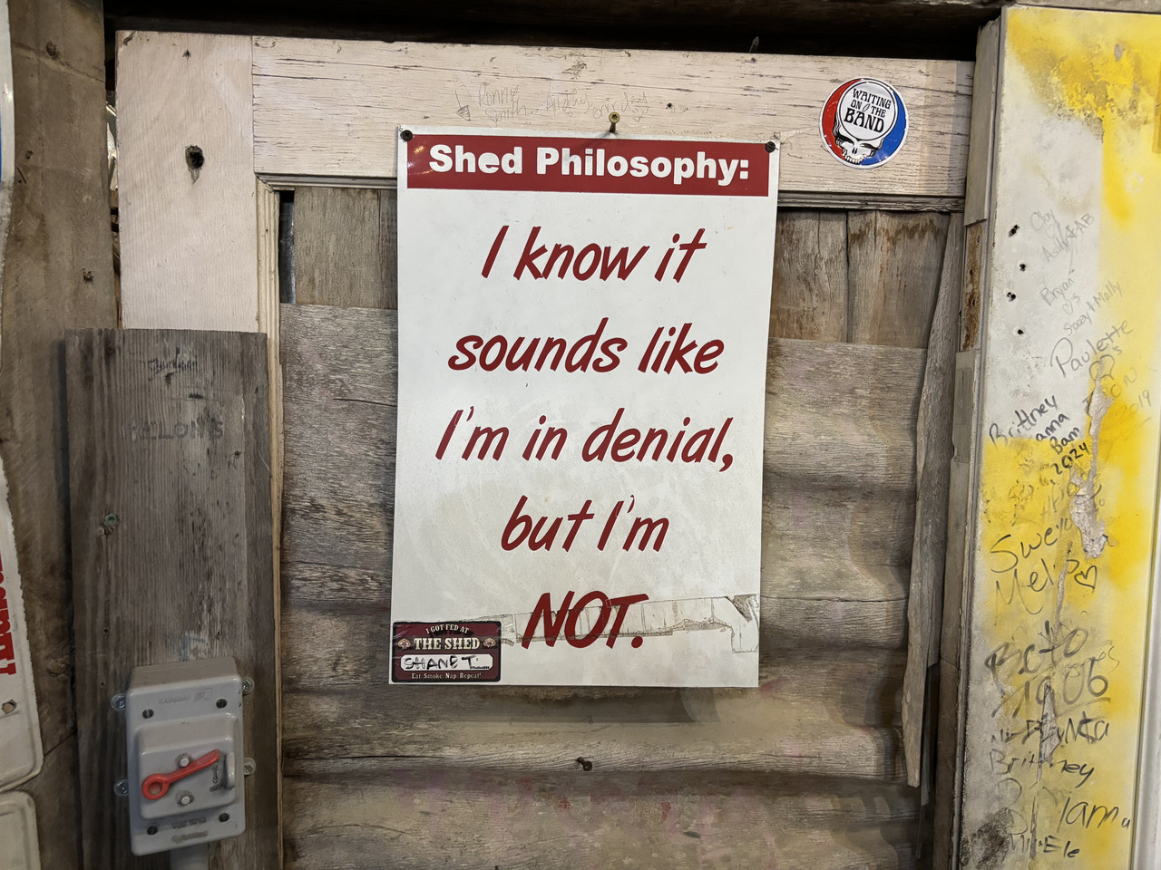 Pearls of wisdom appearing randomly on the 'Shed' walls and one of our group...