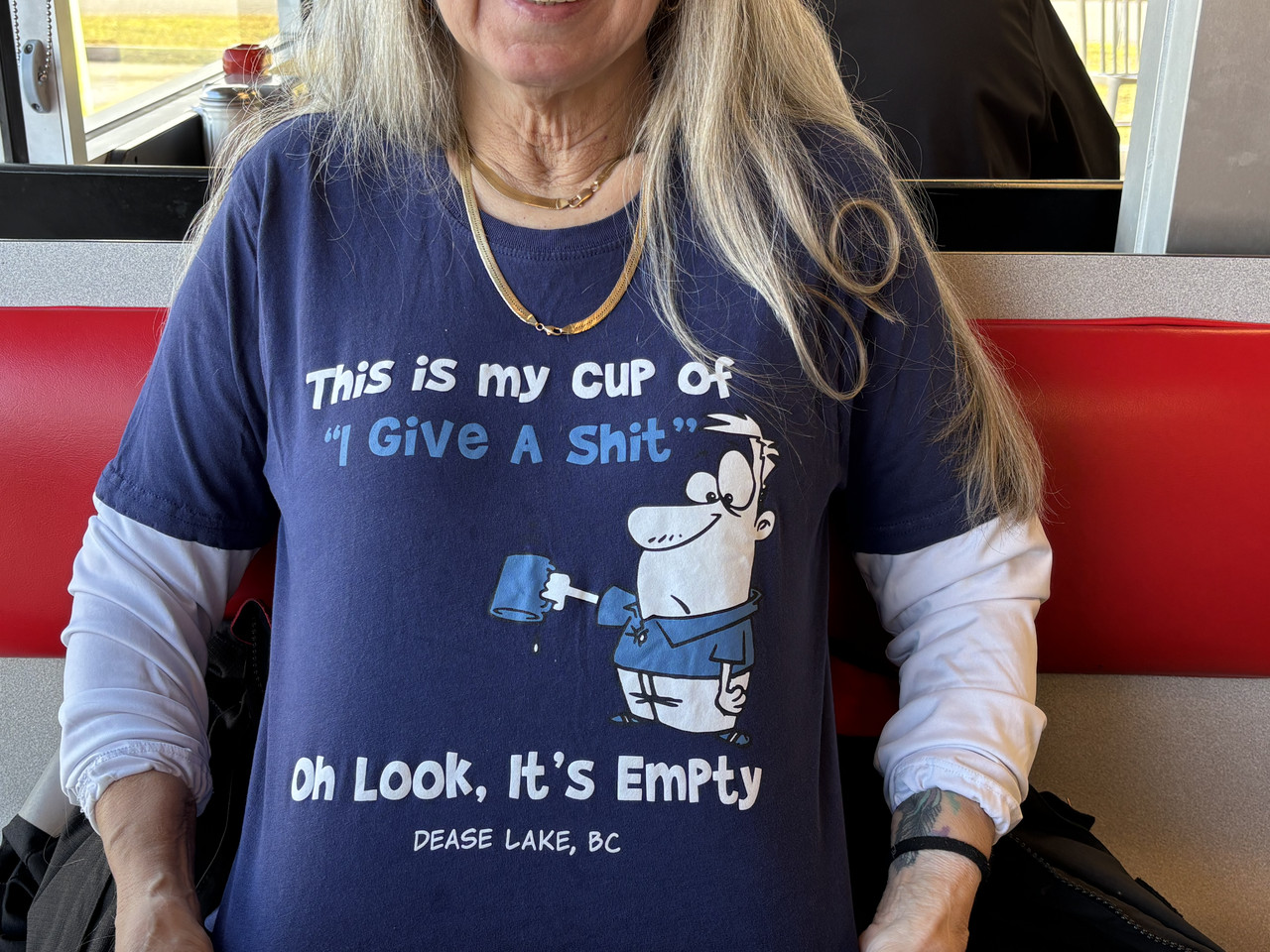 For this tired ol' rider it was just under 100 miles from my motel to that eatery... for Dennis the ride was about two miles... perfect! I surely drew the long straw on that deal... The ride was fabulous, too! Plenty cool but not cold, only partly cloudy with light breezes and tolerable traffic... Although LEOs were out in-force, my leisurely pace aroused no interest in them regarding us. Dang! Just right for working up a bit of an appetite, too...