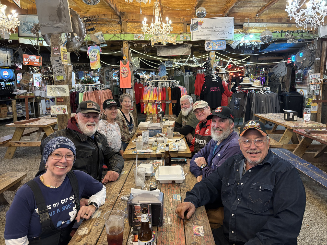 Dennis, Shelia, and Darrell would meet us the next evening at 'The Shed' in Gautier, MS. (pronounced 'Go-tae' - Don't ask, it's a French thing...) A nice but rather unusual BBQ place with gravel floors to set the tone for this novel experience that truly felt like being in a Shed! And that wasn't all...