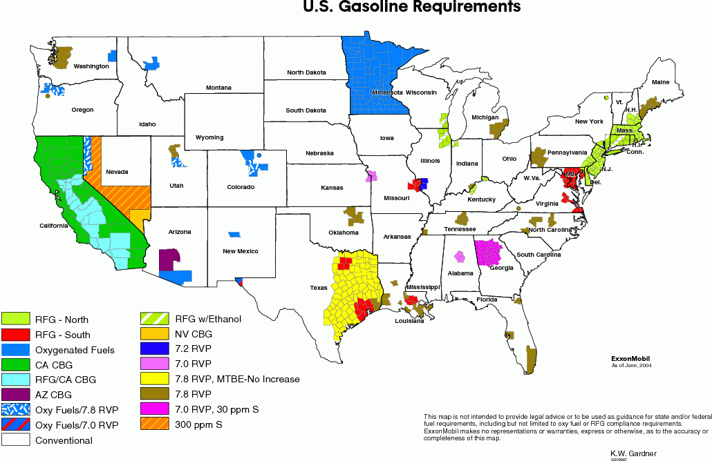 there are many states that have different fuel formulations know as "boutique fuels," to meet local air quality needs. california is still using the lie about SMOG which a natural advent in parts of california. the Native Americas always referred to the LA valley as the Valley of Smoke. same reason on east coast we have the Smoking Mountains, smog is natural. then it blows east and some states use that to inflect emission crap laws on people. You might be correct about the boutique fuels, but there are some states that follow CARB's standards as well on vehicle emissions.
