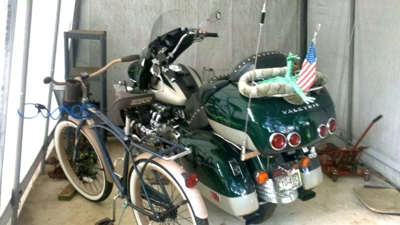 Stan, it is a universal truth of the cosmos that any bicycle parked or stored in the same building as a motorcycle (car)..... will eventually fall on the motorcycle and fudge the paint up.  If you leave it in there, it will hit the bike.      I'm just sayin.  LOL