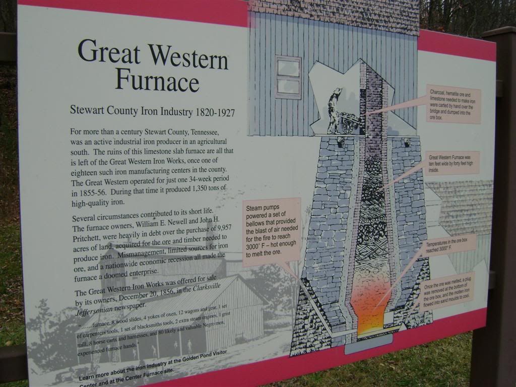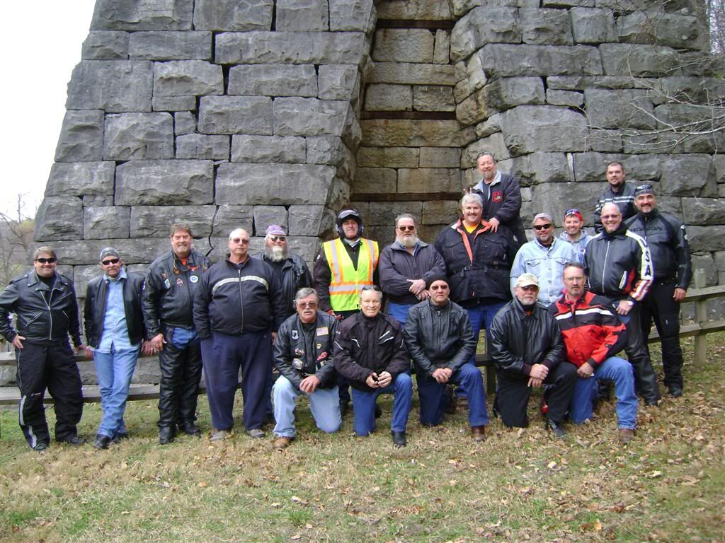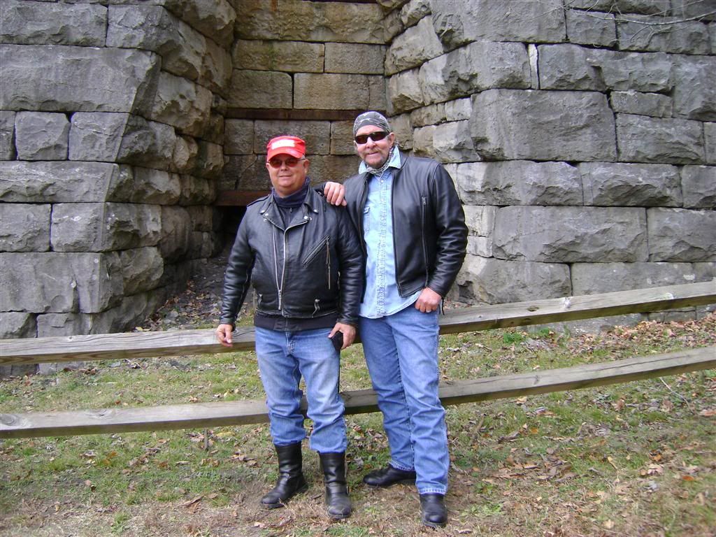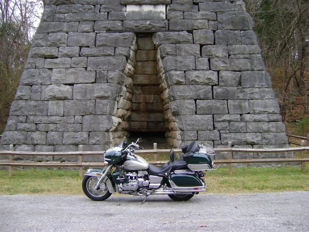 First off I'd like to thank Mac ( Crazyhorse ) for getting this ride together doing the leg work on finding a motel and leading the group ride saturday.Picture below is Mac and his ridin' bud and neighbor Tom.We had riders from Alabama, Mississippi, Maryland, Georgia,Indiana,Illnois, North Carolina, South Carolina,Kentucky and The Great State Of Tennessee...Special thanks to those that put the miles down to join us   On the ride down friday we stopped by the treehouse in Crossville,TN . Eric ( Little Buddy ) and his brother Herb ( TODD ) had never seen it.  When we rolled into the motel friday evening a guest had a gasket blow  I was hoping we'd never see another one of these over the weekend and we did'nt   First stop was Fort Donelson I did'nt take many pictures. This is a cool place to vist and what many think was the turning point of the Civil War. Check the link if interested in learning more about Fort Donelson. http://en.wikipedia.org/wiki/Battle_of_Fort_Donelson  Next stop .....The remains of this limestone slab furnace are all that is left of The Great Western Iron Works. Great Western opened in 1855 and in a 34-week period produced 1,350 tons of iron. The production of 4-4-5 tons of iron required twenty bushels of charcoal, 800 pounds of ore, and 80 pounds of limestone. The furnace is a symbol of Stewart County's industrial heritage. Before the Civil War, Stewart County was recognized as one of the few industrial areas in the rural south. Stewart County residents built communities around these furnaces, with most of the residents depending on the furnaces for income. The last iron furnace in Stewart County ended operation in 1927. As for the Great Western Furnace, it's production ended only a year after it started. In 1856 its owners put it up for sale.    " The Money Shot " Taken at the Great Western Furnace near Land Between The Lakes.