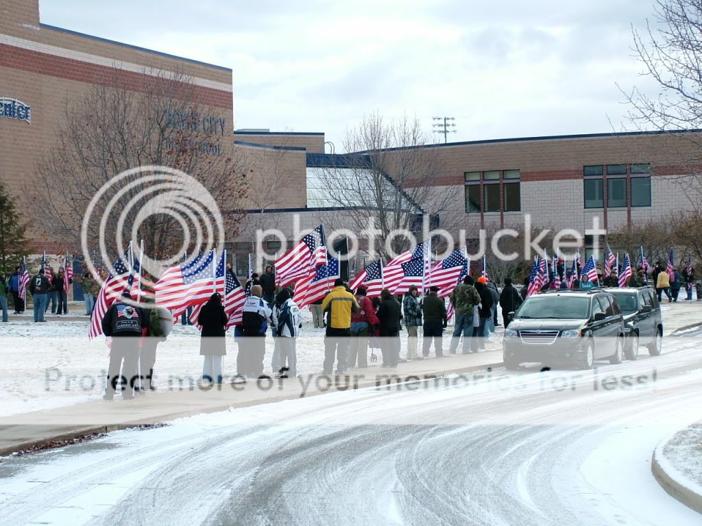 ...The family arrived in a caravan with a streach limo leading the way. Those who were military saluted silently as they passed into the school, us civilians held our hand over our hearts.