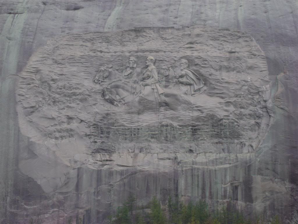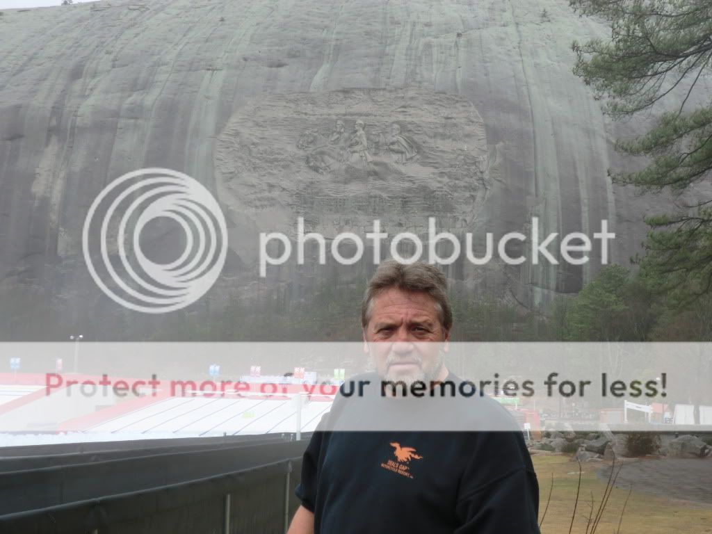 We stayed pretty much dry across Blood Mountain but the roads was wet so we did'nt play . Rained on us good around 25 miles from Paul's place and we rode into the garage wet.You ever been to Stone Mountain ? We stopped on the way back to his place to check this out.