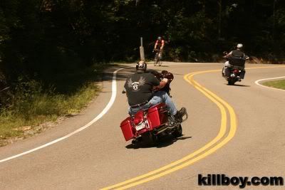So these guys go out of their way to ride a road known for its curves, and then camera guy tries to STRAIGHTEN as many of them as he can!  uglystupid2