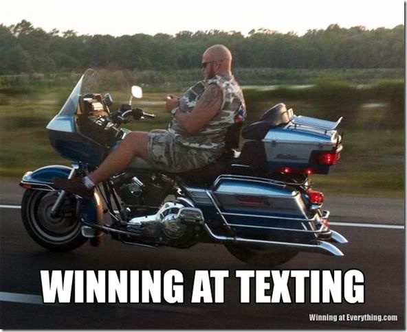 As most of us are i'm busy enough on my motorcycle while i'm out riding-staying alive!! cooldude We all know you don't have to travel very far from home to find stupid. 2funny And yet i still have people in my own family that ask me why i don't/won't answer my phone while riding/driving. crazy2 RIDE SAFE.