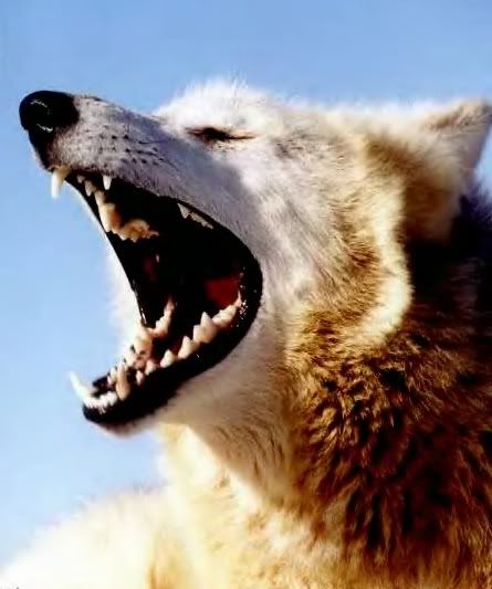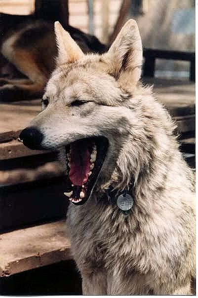 I think it's great that someone does this but, it's not for me. My BIL had a next door neighbor that raised Mixed wolf pups and sold them. He said they were 90 some percent wolf. Don't really know but, what I do know is that when we would go over and visit or borrow or return a tool, we'd always go look at the wolves. His big alpha female scared the hell out of me and I won't deny it. When she looked at me, I could tell she was sizing me up. Most likely wondering if she could take me in one or two bites. :'( I'm convinced one would have been sufficient. Very cool animals but not one I could ever trust. How could you not trust this....    She's not being viscous, but just yawning