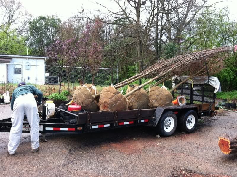 well......play in the dirt anyways.....if you like trees, I'd let you help plant these little fellows....Going to plant them as soon as the block retaining wall/planter is done.....we would have finished that project today had it not rained on us.....should have it all buttoned up by Friday....... cooldude