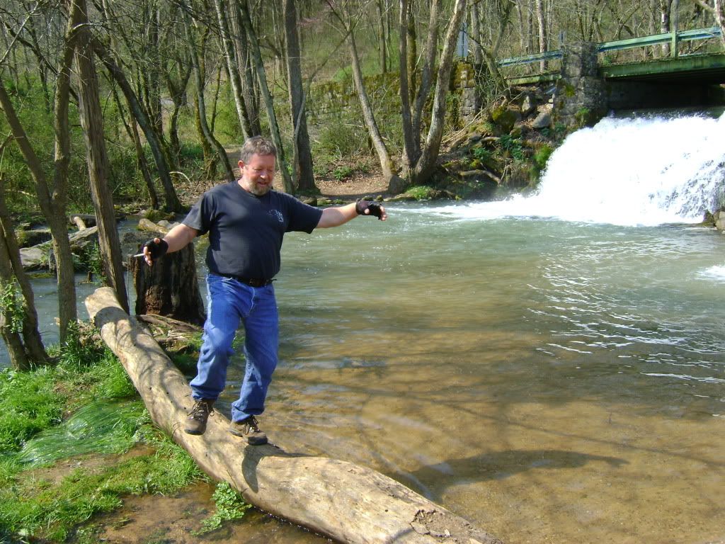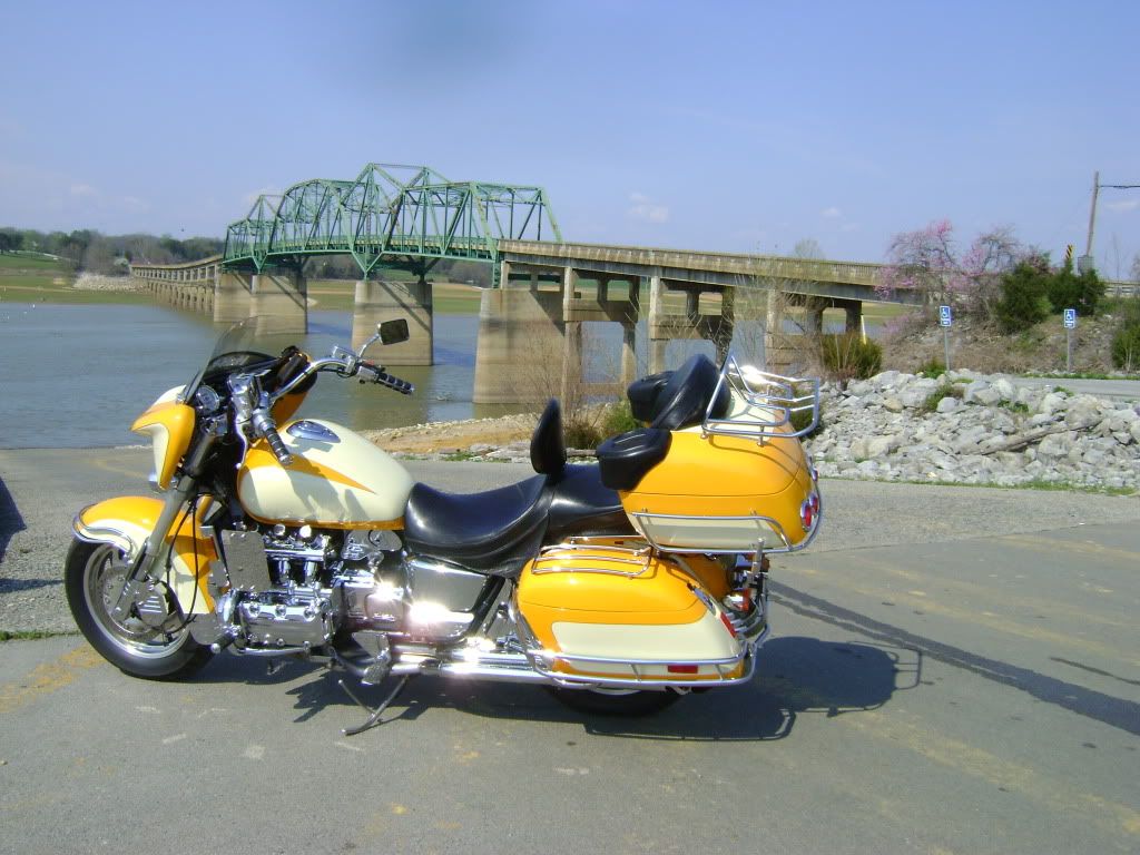 Cabin fever was starting to set in on me from all the hanging around the house waiting to get better. Weather folks was claimin' today would be abundant sunshine with temps near 80. Called a couple of my ridin' buds and we was in the wind. Gordon ( Lucky 13 ) said I had been here before but damn if I remember it  This is on Buffalo Creek that feeds in the French Broad River.  Soon as we pulled in I said whats the pipe for ?  Ask, and Ye Shall Receive...   We got in about 225 miles today ridin' mostly around The French Broad and Nolichucky River's both rivers feed Douglas Lake in beautiful east Tennessee.  Lots of folks out fishing and more important catching ....We had heard they was wearin' out the walleye,sauger,crappie and white bass on both The French Broad and The Nolichucky. The bank on both sides had people fishing as well as many in boats and all catching fish   Seen along the way ...Nice ol' 56 Nomad  ???   It was good having my friend Paul ( Wimp ) back ridin' after surgery a couple months ago that had him down and out for awhile.  Not sure what they call this bridge but I liked it.  " The Money Shot " I bought this bike in June of 1998 as a Standard and everytime I ride it, it just get's better. It runs as good today as it did the day I bought it...Maybe better