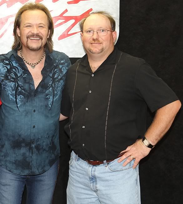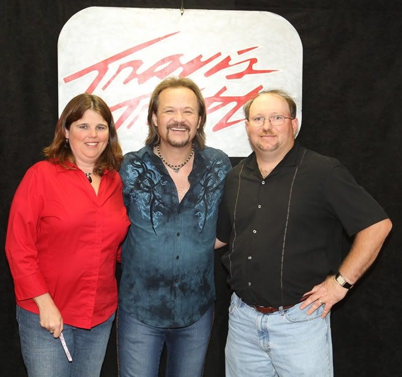My friend Rebecca won two extra tickets and the backstage passes where we could have our pics made with Travis......she seemed to be excited.....