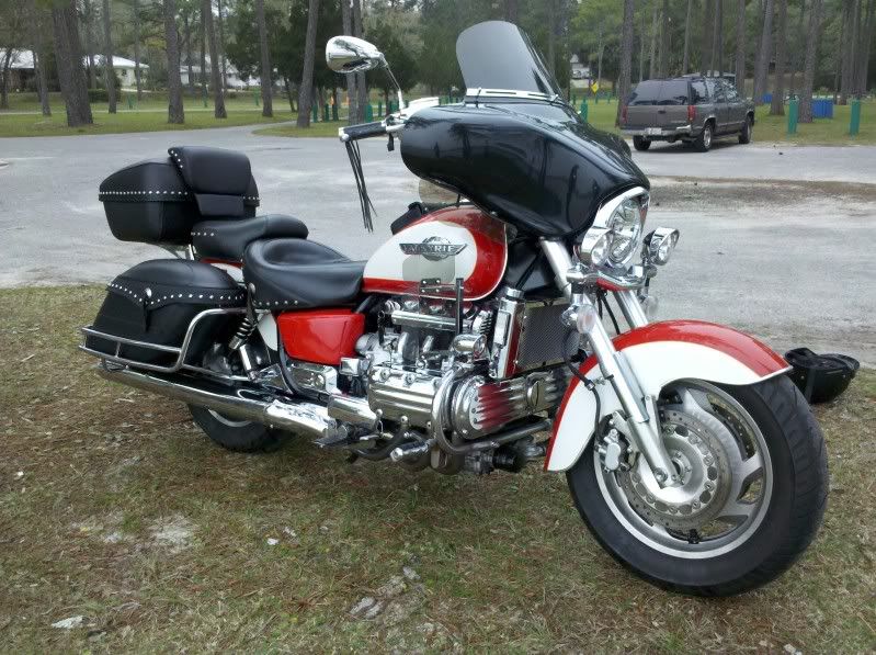 Tim, I have thse "hog" lights on my Valkyrie.....heres what they look like on a red and white PS> And, Tim....I have these lights because of a get off of my own.......different circumstances, but hitting the pavement is hitting the pavement.....it hurts and it breaks stuff