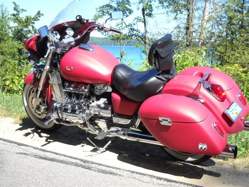 I had them on my Valk and loved their look. Sadly, the bike laid on her side with my leg under the bag!  Cry