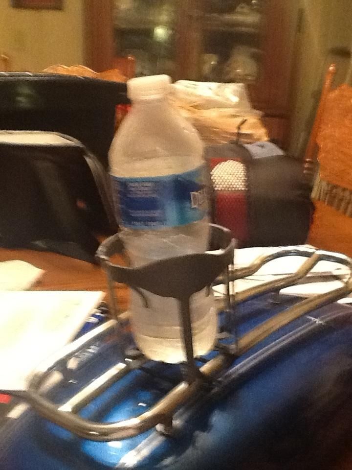 Another idea, which I use on my other bikes (no trunk/bags etc) is to get a water bottle insulator wrap with a strap or I use a caribiner hook to snap it to my belt loop. I freeze the bottle of water over night and sip on it as it melts. Its best to get one with a pop up closure so you can take a sip when riding.... otherwise I would recommend pulling over to unscrew the top if need be. But if it's for her, she can use both hands unless she needs one to hold on for dear life....