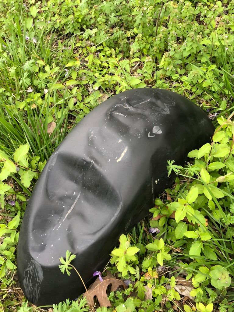 Fender look like it came off and was rubbing my tire for the last 10 miles, but it was still wedged in place between the forks. I pulled it out and one edge looks like it hit the road a few times because it was really tore up. I'm guessing the wind caused it to hit my headlight, creating the really big dent. No damage to the rest of my Valkyrie. There was no way for me to bring it back with me, so I had to ditch it in the woods. I'll pick it up tomorrow. I'm just thankful that nothing serious happened...