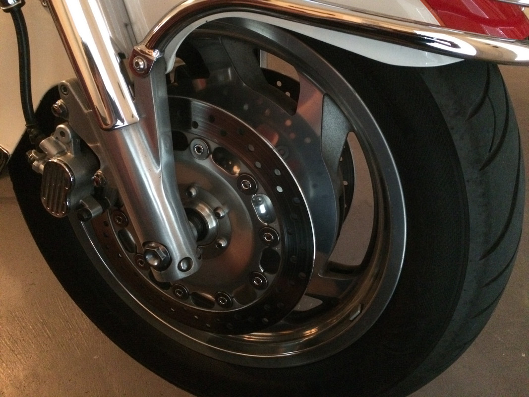 Just a rain report.   Embarrassed  SO! I waxed the bikes yesterday and today put the Cobra bike up on the lift so I could clean the wheels.  Gave them a buff and also polished the fork lowers a little.  Just did the under-cover cleaning a couple weeks ago so now the Cobra bike is ready for 2019.