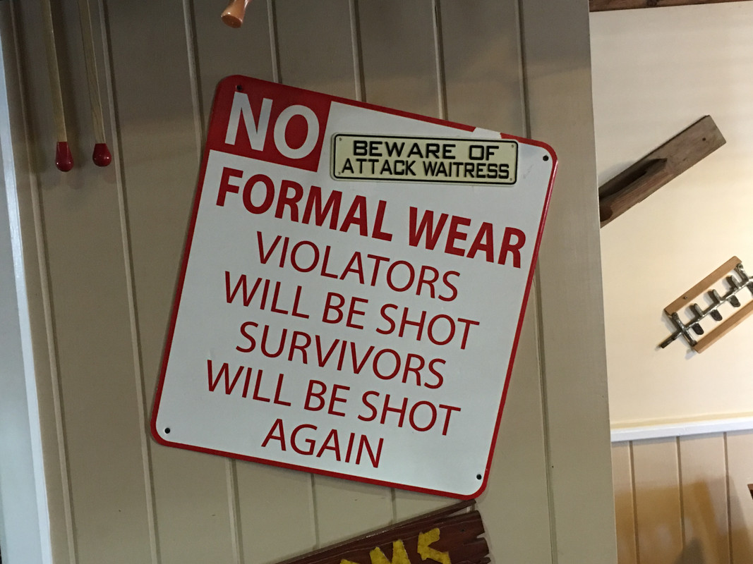 The chow was very much up to expectations and a wonderful dining experience was had. I like this place... The food is always good, the restaurant is fairly new and in very nice condition... The ambience is appropriate and tasteful... And, there is a sign that confirms beyond any doubt that it is my kind of place...
