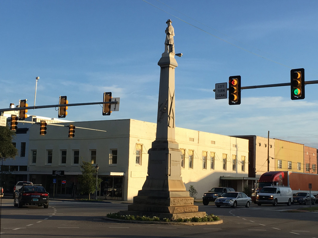 No need to hurry so much, it turned out, and I could take another day, if I wanted to… so I did! That enabled us to ride over to Enterprise, AL, and to enjoy one last photo opportunity on this trek… More backroads riding, a stop or two in a tiny village, including one where we chatted with the chief of police for a while and had a most enjoyable pause from our primary mission…