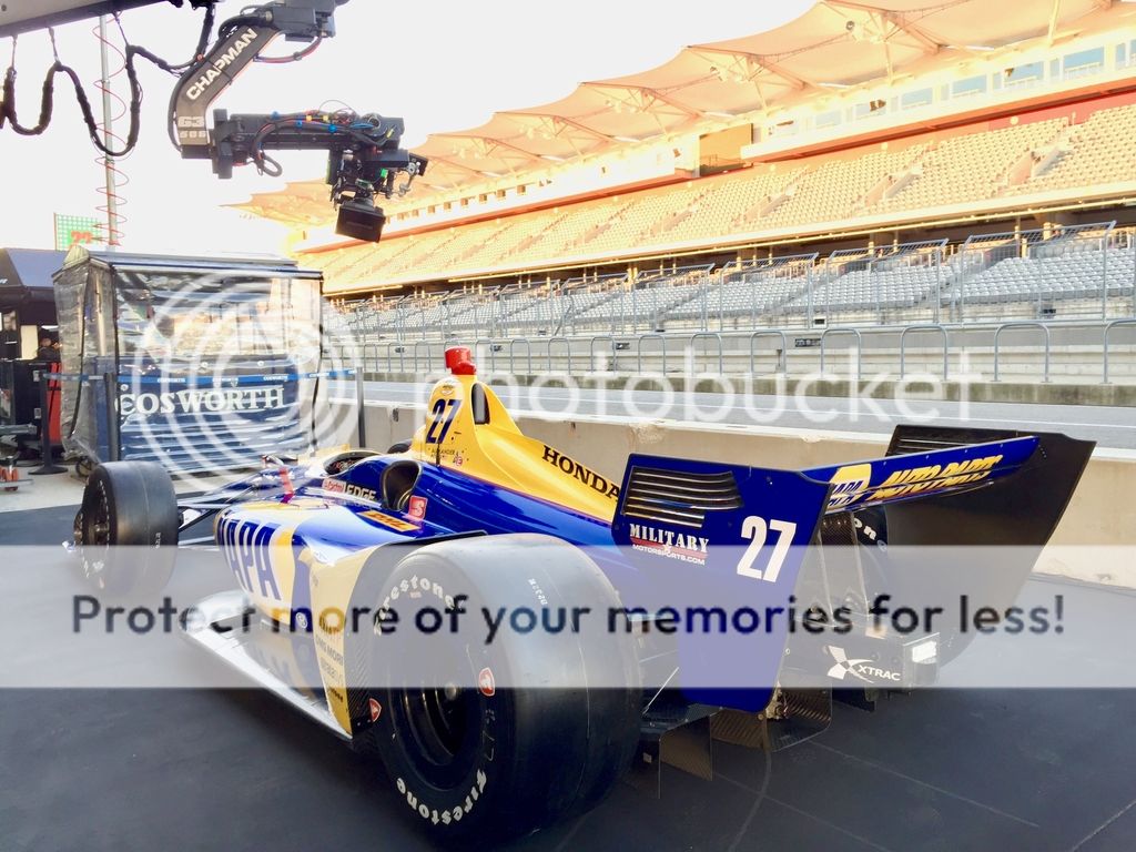 Was just there last week while they practiced...pretty amazing! We were filming promos for the Indy 500...  Nice photos! I saw some video of the practice sessions on YouTube. Looks like it will be a great race next month. Indycars might not be as fast as F1 but they sure sound better! F1 cars sound miserable since they switched to hybrids. A friend attended an F1 race during the first hybrid year and said the tires actually made more noise than the 'power units'. The last F1 race I attended was the opening of COTA 2012, when they still ran 19,000 RPM V8s, and the sound was awesome.