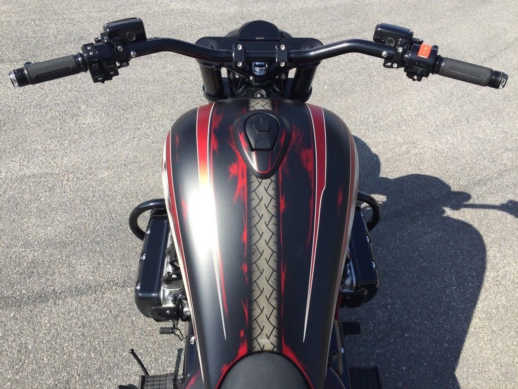 That is nice  Just like a cafe should be. Nothing not needed is on the bike , foot pegs moved, nice detail work. I like the Six Pack bike and the blacked out Bobber, but w/o turn signals and mirrors, you won't get far w/o getting stopped.