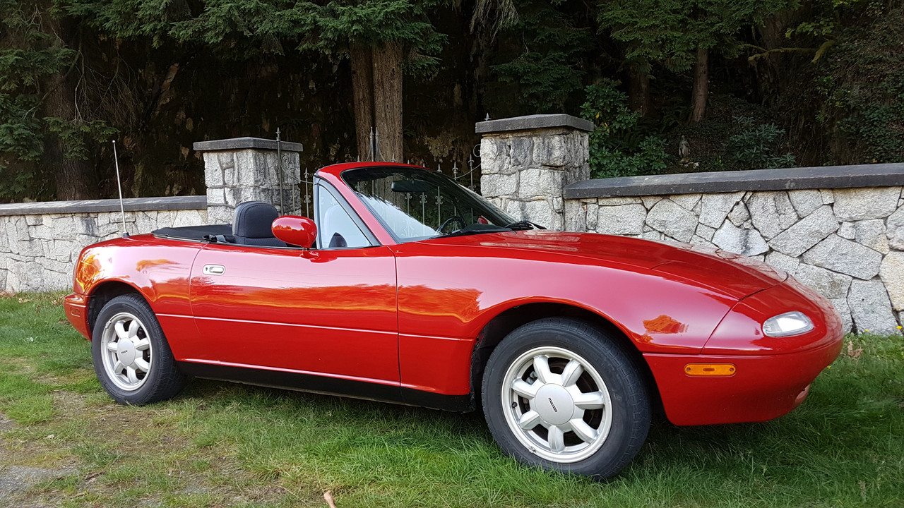 My wife has a mint '92 Miata...bone stock, save for the paint job I gave her about a half dozen years ago. Extremely "mild" in terms of HP, but probably the closest you can get on 4 wheels to the feeling of riding a motorcycle. Not so easy to get in and out of for your's truly and the top of he windshield frame is in my direct line of sight, but it is fun the odd time I get behind the wheel